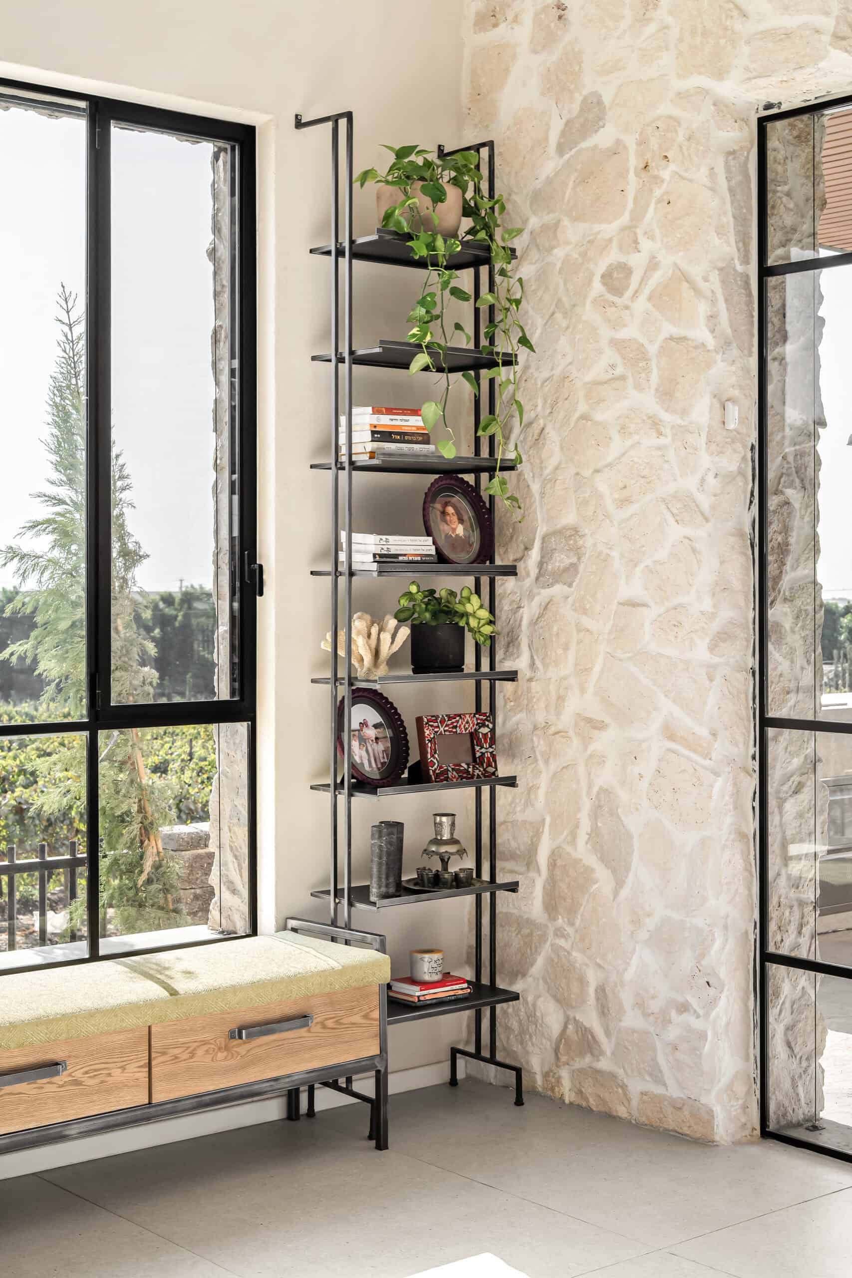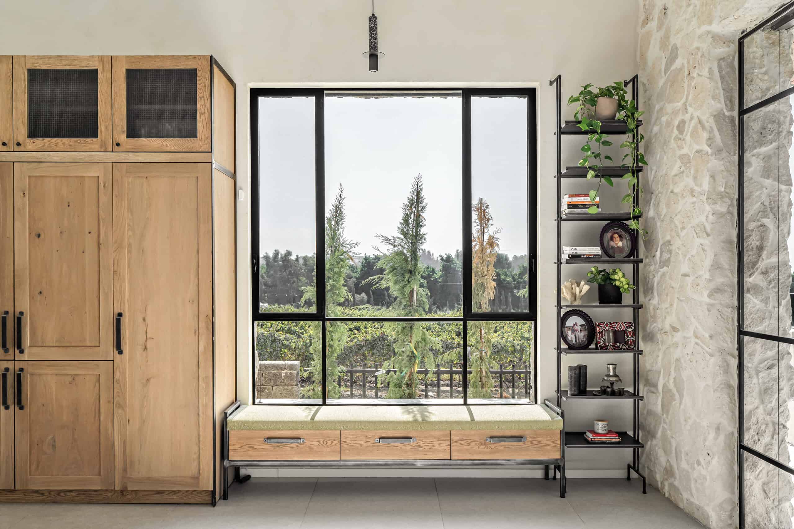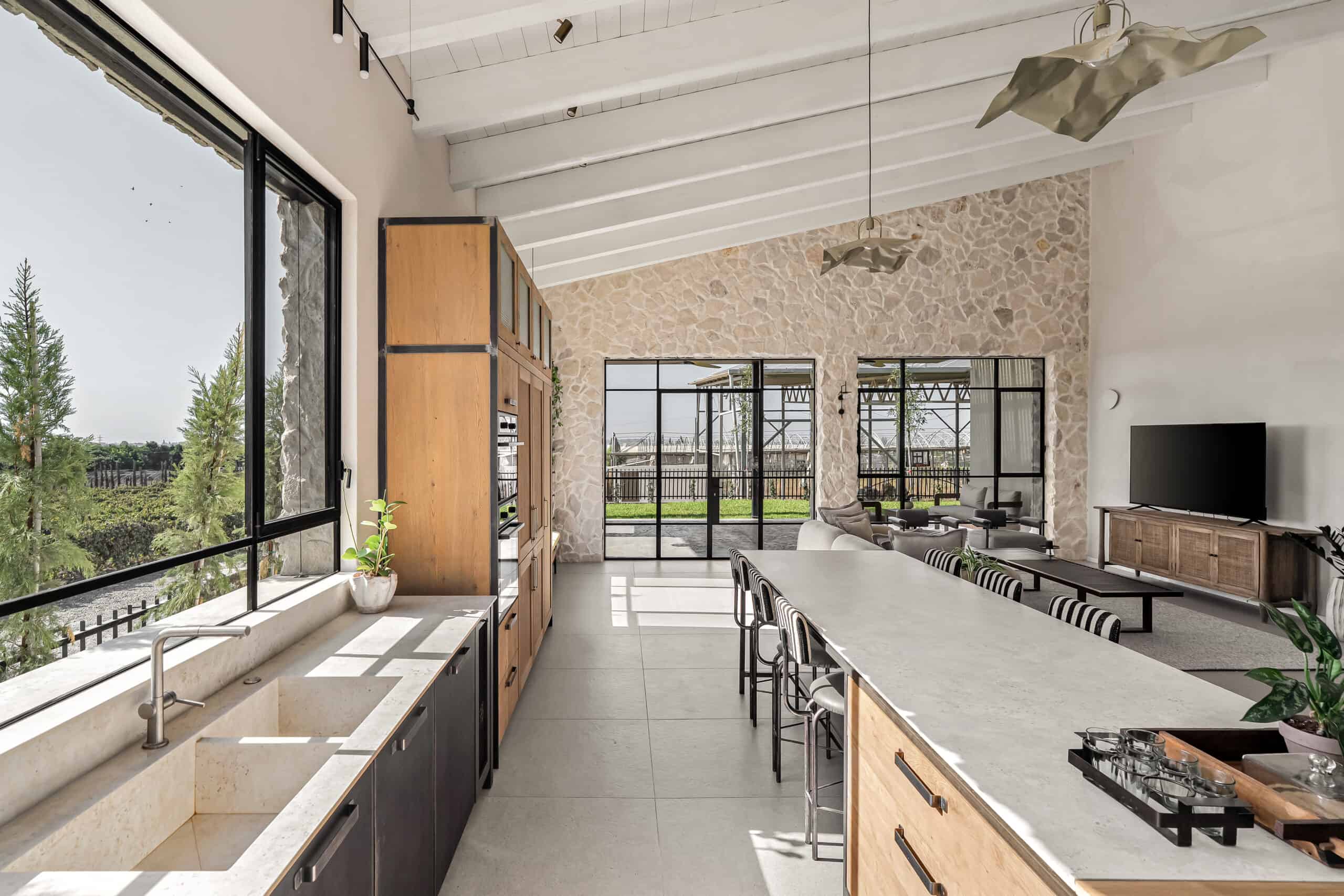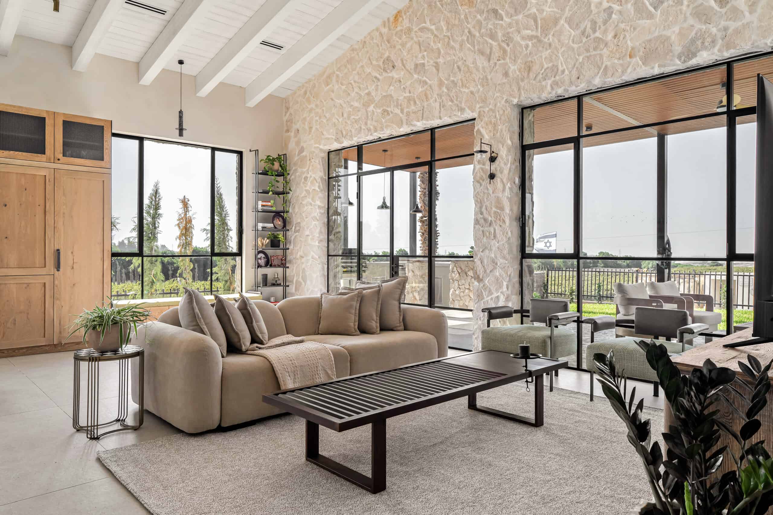 בחרנו בטבע, בחומר, גולמי ככל שניתן. אבן, עץ, טיח מינרלי, בדים טבעיים, אמנות מקומית שנעשו כולם באהבה, בין סבבי מילואים, בין מלחמה לתקומה.